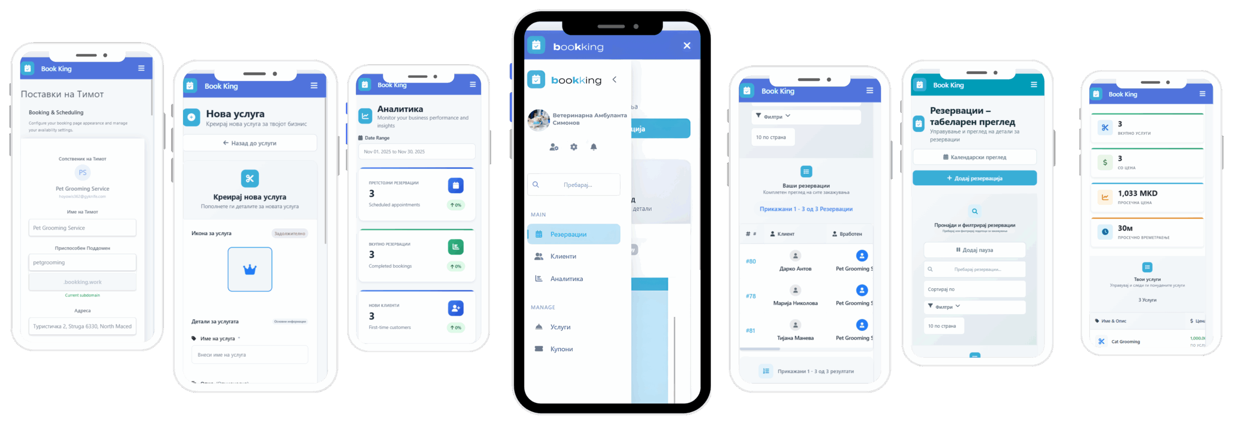 Нашата платформа е флексибилна и се прилагодува на различни индустрии. Без разлика дали си самостоен професионалец или имаш тим, системот за закажување ќе ти помогне да штедиш време, зголемиш приходи и изгледаш професионално.